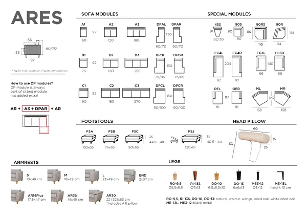 | ARES AR14Plus 17,5 x 47 cm | ARES AR30 32*/23 x 53 cm *pillow included in measurement | ARES AR36 14 x 49 cm |