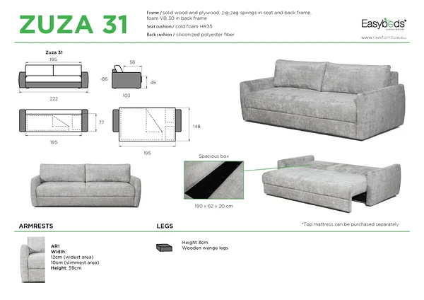 Zuza frame is made of solid wood and plywood with zig-zag springs in the seat and back frame.