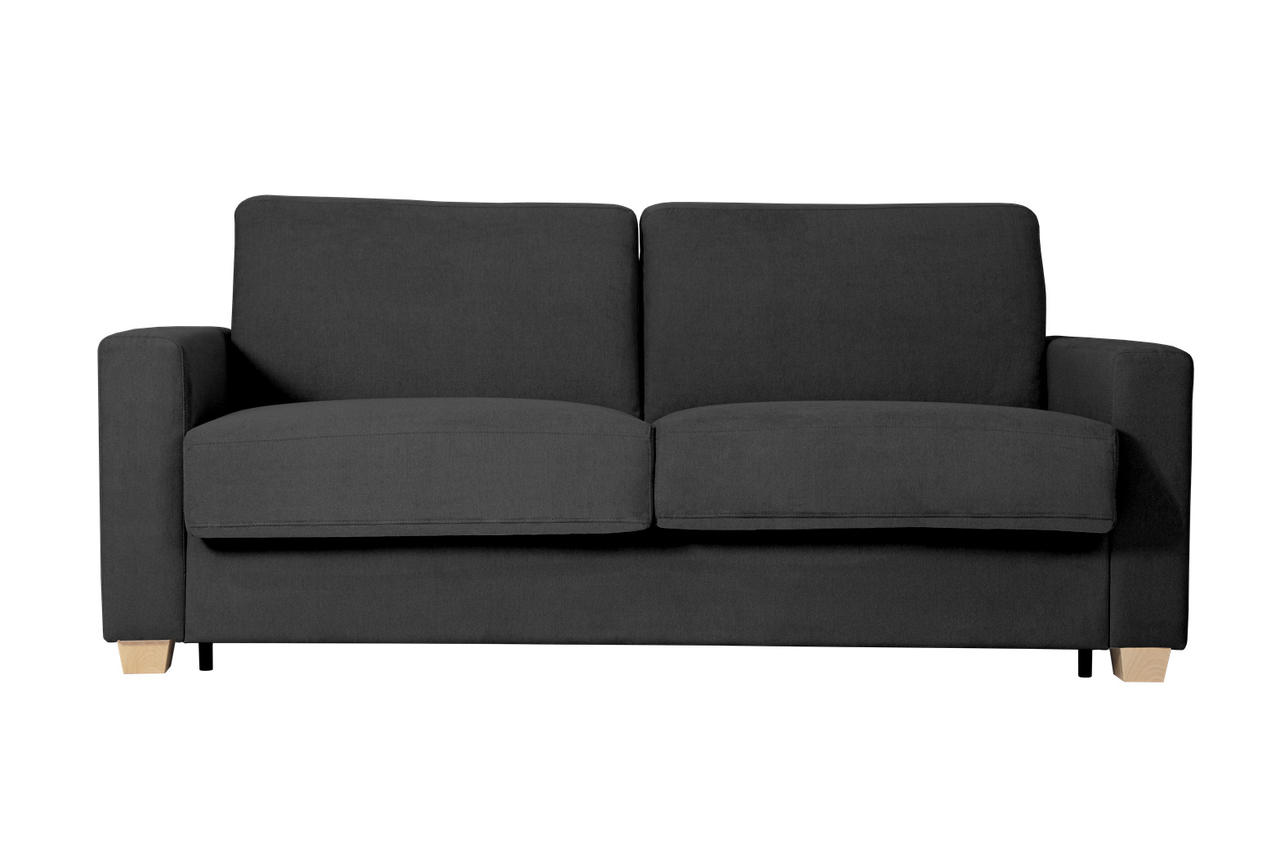 Seat cushions are filled with cold foam HR35 and back cushions with cold foam HR. Inside the sofabed is mattress with bonnell springs.